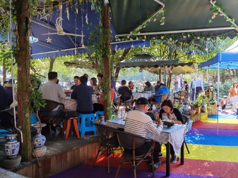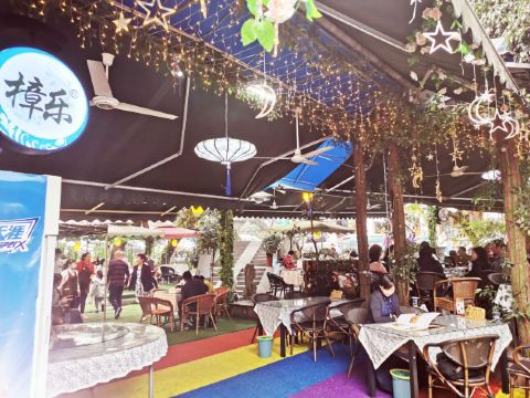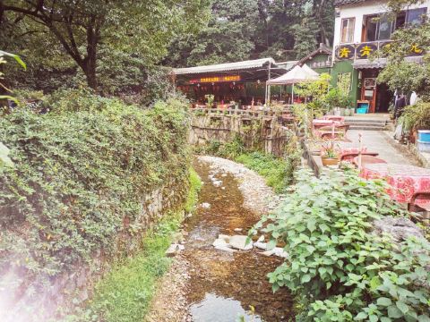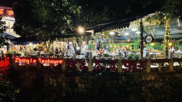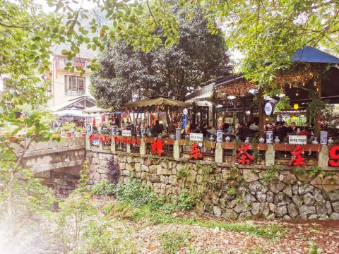 平安夜的蚊子樟乐茶庄,梅家坞91号,梅家坞公交车站下车,但见一片青瓷茶庄,坐落于梅家坞的青山如画,绿意盎然之中,沿着小桥缓缓步入其中,邻溪露台而坐。谈笑间听溪水孱孱,赏山花烂漫,闻鸟叫蝉鸣,大自然赐予梅家坞的是一曲神奇又灵犀的篇章,一首动人却唱不完的歌曲。在依山傍水的樟乐茶庄,品味农家菜,喝喝龙井茶,人生所追求之惬意,也莫过于此。 [服务]老板很是热情,入座后邀请我们关注,立马送了两罐冰可乐解暑,这里扫码点单是扫码后,手工里出现菜单,再让服务员人工点单的。服务态度赞,动作效率高,有求则必应,服务员耐心向邻座客人介绍餐品,农家乐的热情又亲切的款待,仿佛去邻家做客,放松疲惫,心旷神怡。 |莼菜汤^杭州特色的莼菜汤,细滑的莼菜在唇齿间尖缠绵。在炎炎夏日里越发清爽开胃,汤底里放了醋,口味似乎更为浓稠,也记忆深刻。 |龙井宴球^匠心独具,造型精美,外层似乎是银耳,包裹着颗颗鱼肉虾肉组成的肉圆儿。宴球Q弹细腻顺滑,汤底漂浮着芹菜粒儿,鲜嫩之余,意犹未尽。龙井的秀美风情,尽在这一碗龙井宴球。 |酱爆螺蛳^朋友点的酱爆螺狮,酱香浓郁,超级下饭。本身不爱吃螺狮的我,竟然被“酱”惊艳无比,甚至用|龙井宴球^蘸了螺狮酱,也津津有味。 青花瓷的装饰格调,无处不在地点缀着,樟乐茶庄小桥流水般的意境,似乎更显宁静致远,眉眼之间全是你,梅家坞的新鲜空气。沁人心脾,畅快呼吸。 樟乐茶庄,依山傍水,惬意人生。