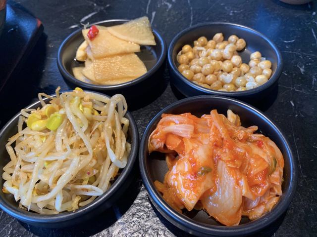 第一次吃这种方式烤的鳗鱼,对这家店抱着很大的期望,当然也没有让我失望,这家店是在滨江的,店面比较大,环境也挺好的,中午的时候去,生意感觉一般,服务员态度不错,还帮忙烤鳗,招牌炭烤活鳗鱼,招牌的活鳗鱼当然要点,不可错过,一大份有好多小块,如果我们自己烤肯定掌握不好火候和时间的,味道还挺不错的,一落座之后就送上了小菜,4种不同品种的小菜,泡菜的味道挺不错,也是我最爱吃的,价格适中