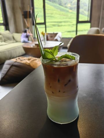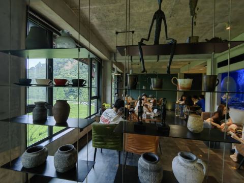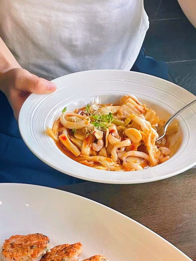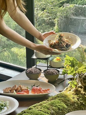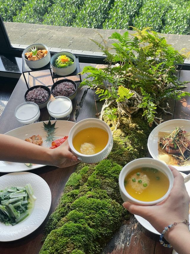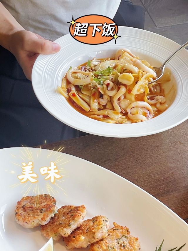 美丽艾米莉做攻略看到说来杭州这家店必打卡,风景巨美,那必须约上姐妹了 正好那天我俩逛了半天景区,也是累了,进店一下子就觉得值了,窗外大片大片的茶园一下子进到眼睛里,果然是万亩茶园环绕,眼睛一下子被“氧气”充斥了! 我们大概看了下,这个店有三层,一楼庭院是那种下沉式的卡座,二楼落地窗氛围感绝绝子,顶楼是个露天,哪哪儿都能出片,就为这环境必须冲一把~ 选了套餐,挑了靠窗的位置,他们店不仅有咖啡,各种下午茶饮品甜品,还有好好看的菜,超级精致有创意,随手一个菜品出片~ 我们选的是一个双人创意菜的套餐,还加点了咖啡,漂亮菜吃起来真的很很满足住了… 🍤香煎小青龙虾饼:虾饼吃起来很清爽,还有一点点瀑汁,有点停不下来炫 🦑韩式泡菜炒红鱿:这个菜第一次吃,好有创意,泡菜和鱿鱼毫无违和感,一口下去脆脆的 餐后我俩坐着聊聊天,看看窗外,喝着咖啡,这才是生活啊…