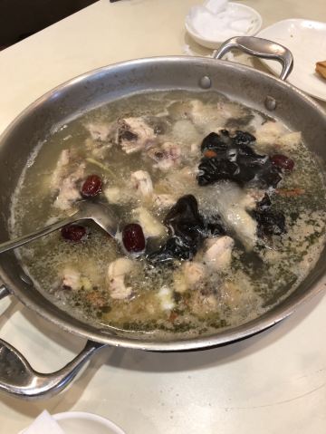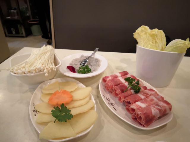 买的2-3人套餐。套餐搭配很好,三个人吃足足有余。超级便宜,整套才56元。 锅底开了以后上来一整盘鸡,一次全部倒入,一直煮着鸡也不会老。 非常非常鲜,鲜到可以肯定不是原汁鸡汤的鲜,加了鸡精之类的调鲜料。但鸡还是很好吃,嫩。 春卷是荠菜馅,温热松脆,很好吃。鸭血很正宗。总之,食材都很好。 调料不在套餐内,需另付5元一份。但不用也完全没有关系,汤够鲜,咸淡也正好。