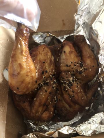 #元気烤鸡(整只)丨古法卤香#这一家烤鸡真心好好吃,卤味的就很棒,送过来还是热乎乎的,而且肉质很嫩,一撕扯就下来了,个头好大,一个人完全吃不完。