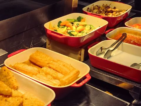 是西溪喜来登度假大酒店的全日餐厅 自助餐厅 也是酒店的早餐厅 先说环境 特别好 酒店本身就在西溪湿地景区里面 餐厅的室外区域就是对着湿地景区的 脑补一下 是有多棒 他家占地大 酒店大 餐厅面积也特别大 所以餐食也比较多样的 中式 西式 糕点 色拉 面档 选择还蛮多的 因为空间够大 所以虽然人多 但是倒也没有觉得很拥挤 服务员都很尽责 收拾的效率跟补货的效率一样高 总体还蛮不错的