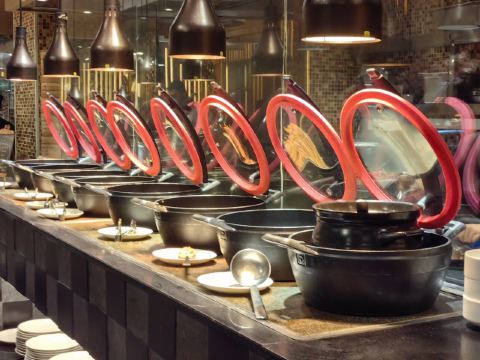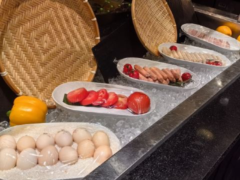 这家自助餐厅的环境非常好,落地窗外的水域和植被让用餐体验更加愉悦,适合和朋友聚餐。