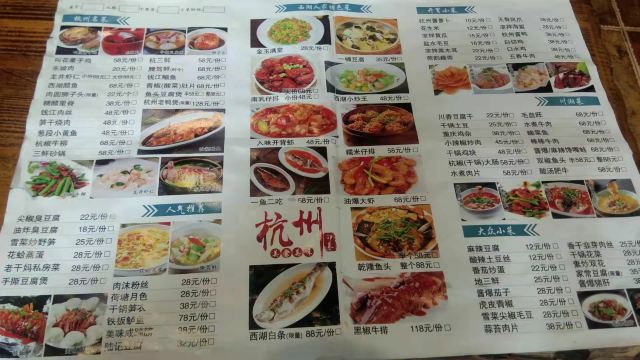 叫花鸡,东坡肉,龙井虾仁,西湖醋鱼,陆记豆腐,油焖春笋,家常小炒年糕,钱江鲻鱼,酒酿圆子羹,一鱼两吃,杭州鲻鱼,香菇青菜,酸菜鱼,酒酿小圆子,西湖莼菜汤