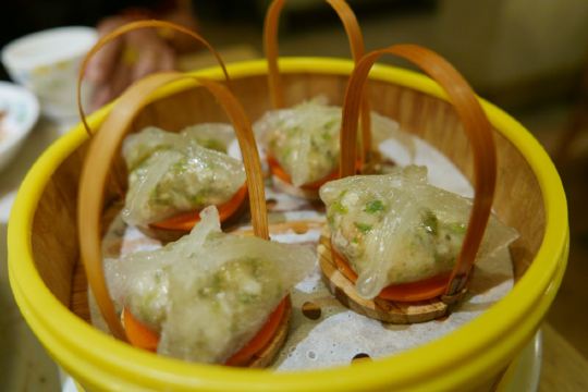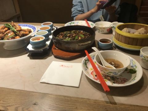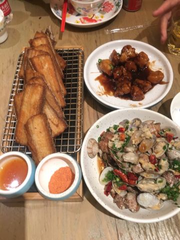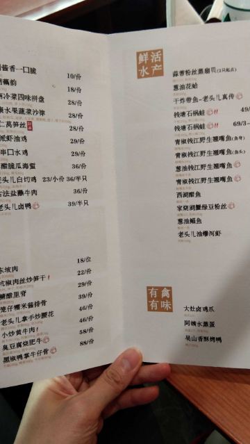 夏半夜_花花旁边买好奶茶就来这里了,10点40分来的,还没什么人,二楼坐定,装修和餐具什么的都让我想起了好多杭城餐厅 【老头儿油爆沼虾】---69元 酸甜味的,和我想的不一样,但很好吃, 炸的酥脆,沾上酱汁,也不会味道太重, 总之我很喜欢 【干炸带鱼老头儿真传】---32元 应该放了小苏打?总之酥脆得很啊! 火候很可以,没有焦,外脆里嫩值得一点 【老头儿卤鸭】---38元 量大,便宜,酱鸭该什么味就什么味 【冰镇酒醉六月黄】---28元 便宜,略瘦,还不错 【邬山腐皮杭白菜】---23元 我以前一直点外卖的菜,香甜的菜,适合所有人口味 【老头儿卤鸡爪】---4.9元/只 点起来!!入味酥嫩是我对卤鸡爪的要求,总之符合了 【纯手工水晶虾饺】---8元/只 外面用的水晶皮,里面好像还放了松露,竟然是很正点港式味道 【宋嫂鱼羹】---26元 还行,当然没有我前几日吃的好但这个价格很好啦! 【特色臭豆腐虾皮】---26元 哈哈哈,真的很臭很有特色的 【桂花糖年糕】---4元/块 这才是我喜欢的糖年糕嘛!!! 总体很喜欢哒!有滋有味吃完回上海 适合大多数人口味的店