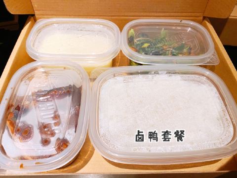 Lao Tou Er You Bao Xia(wu lin dian)在武林广场,找了最近的一家老头儿油爆虾外卖。刚拿到外卖的时候吃了一惊!点了两份一人食的套餐,居然整整齐齐地分别装在纸盒中,打开纸盒,里面整齐的摆放着四个特制的外卖盒,饭盒大些,三个菜盒是饭盒的一半大小,里面分别装着水蒸蛋、蔬菜、𠧧鸭;另外份的主菜是炒黄牛肉。外卖盒小巧精致,量正好一人食,不浪费,真心喜欢老头儿油爆虾对外卖的精致做法!