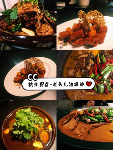 Dreamanan杭州探店|性价比高的杭帮菜去哪吃? 在杭州范围内有很多家分店,每次去都必点油爆虾,这次体验了不同的菜式很新颖也很独特 餐厅名称:老头儿油爆虾 环境:位于商场里的一家老店 ♂️交通:可地铁出发在龙翔桥站下车 营业时间:11:00-14:00 人均:80 周边游玩:湖滨银泰in77商场 地址:延安路239号 —————————— 用餐感受: 这家店位于in77湖滨银泰D座,如果你是做地铁到这边,从C口出过了马路就是,维多利亚的秘密这里,餐厅位于3楼,装修风格也和其他店略有不同! 因为我是第一个到,他们很热情的给我安排座位,准备茶水,每上一道菜也会很详细的介绍相关的食材呀,用料呀,很细致服务也很好! 菜品推荐: 「十六香煮蟹」 这道菜很特别,日常吃螃蟹都属于清蒸或者红烧为主,这样的做法还是第一次接触,尤其对于最近迷上吃辣的我来说非常惊喜,保留了蟹肉原汁原味的基础上又多了份鲜香 「手工芝士焗紫薯」 只是味很浓郁,吃了辣以后来上一口紫薯,甜而不腻又很糯,一起的小伙伴强烈推荐这道菜,对于爱好芝士的你一定不要错过 「招牌乾隆鱼头」 来自千岛湖的鱼,鱼肉很鲜嫩很入味,搭配餐厅自制的豆腐,鱼肉用勺子伴着汤吃,再来上一份醋完美 「叫花鸡」 据说这道菜每天限量哦,毕竟流程比较复杂,制作至少需要五小时,并且选用的食材也很地道,分量很大,鸡身内部有很多料比如各类菌菇等等,鸡肉炖的很嫩汤汁很入味口味稍偏咸。 「坚果老酸奶」 最近爱上了酸奶,所以多酸奶要求蛮高,这家的酸奶颜值和口感都很在线,配上坚果、蔓越莓以及燕麦,是很新颖的搭配,放在饭后也很助消化 「宋嫂鱼羹」 传统名菜之一,海参、鱼肉、粉丝,高汤,饭前上的一道汤,汤底醇厚呈奶白色,没有腥味很鲜,暖暖的汤喝上一碗开启美食也是很棒的 推荐指数: