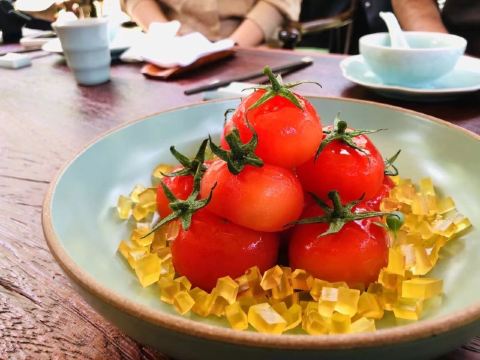 CAT 卡特先生有人问我“村庄食坊”究竟是哪里好?却常常听我在嘴边念叨。我说“珍馐再好也比不上它的妙,只有懂吃的人才会真的明了”! 五叶的番茄圆果经糖水腌渍,填塞杭州本地的山核桃碎。典型的双重自然之味的叠加,山核桃的悠长滋味在口腔徘徊,迟迟难以散尽。开场就有浓烈的惊喜,瞬间就聚焦了我的注意力。澄面包裹的蟹粉包是冷吃的,面皮的筋韧和蟹粉的油润相得益彰。丝毫没有一点蟹粉的咸腻之嫌。开心果碎封裹的松板肉是一个精彩的创新。为甜腻松爽的板肉增添了坚果碎的丰富口感。油香叠加油香,一块就会让你久久难忘。天天鲜捕快运来杭的大白鲳鱼是你的运气,品质是无可挑剔,但并不是天天可见。酥炸的鲳鱼身上搓撒些柠檬皮碎,这个搭配并不是随处可见,但必须承认这个搭配你值得遇见。梅童鱼如今也有鄙视链,只因这款鱼的细分种类较多。黑尾红唇的梅童鱼相比其它梅童鱼体格偏小,但肉质更加鲜甜细嫩。都知道雪菜是用来烹调梅童鱼的最佳拍挡,但微发酵的雪菜和梅童鱼结合却较少出现,雪菜保留一丝脆甜并很好的平衡了家烧的咸度。不会抢掉梅童鱼的鲜味。这道菜的出现应该有掌声了,此时我的惊喜逐渐拔高。谁会想到广东清远黄油鸡在这里和云南杂菌相遇呢!黄油鸡焕发出浓郁的鸡汤,加入种类繁多的云南菌菇,使这道又汤又菜的佳肴无比的醇鲜。观察四周这道菜都是两碗起盛。湘味花胶炖江米鱼是今天全场菜肴的味蕾高峰。湘菜煨炖甲鱼的底色在钱塘换作当地人喜爱的米鱼,花胶给予它浓稠的胶质,豆瓣,紫苏和皱皮辣椒则赋予它口味的丰富和变化。真没想到还会有这样的烹调组合。冬笋丁、老菜脯与东海小眼带鱼炒制盖于焖好的米饭上。如此丰富的口味和口感组合使这一砂锅米饭倍显光彩。这次我非常开心,我觉得我算是吃明白兰轩了。 朋友曾经形容过一万个去灵隐的人,最多只有一个人才会走进兰轩,没错这的确是一个挑人的餐厅。因为这里有一群极度热爱美食的人,非常懂得口感和口味的关系以及出品逻辑,一群开拓思想开阔眼界的出品团队,一个敢于创新善于创新的优秀厨务团队,这里才算我心中的fine dining,这也是我喜欢的农家乐。它虽说神秘的身居山野,但早早已经星钻同辉了,了不起的兰轩! 法云安缦到访,饥肠辘辘无妨。 兰轩村庄食坊,星钻荣耀山房。 菜肴从不模仿,南北元素互访。 烹调独到有方,值得专程拜访。