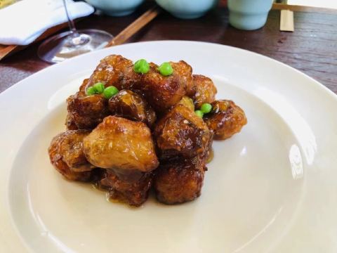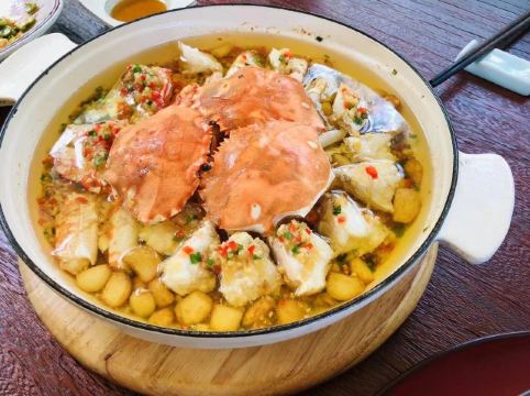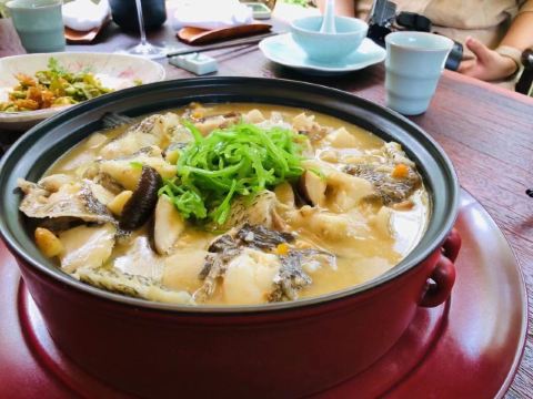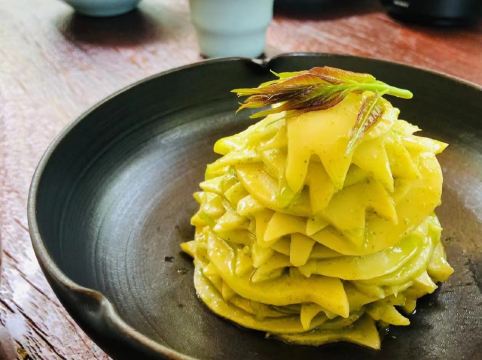 餐厅位于由古村落改造而成的星级酒店之内,周边青山环抱,环境清幽。内部装潢古色古香,木质家私与禅风花艺营造素雅怡人之感。这里以创意江南菜为主,严选优质食材烹制,精美的摆盘和口味都足以令人称赞。