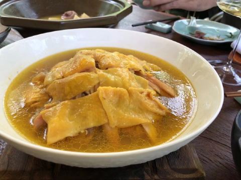 杭州刷新了我对春天的感知!婉约、温和、丰富、细腻、且有力量! 前几天一个人独步走在苏堤上,和游客们摩肩接踵,总觉得这个画面和想象中很别扭。晚上扫码单车近两小时的环湖骑行,终于找到了脑海里熟悉的杭州,西湖十景的指示牌一个个从眼前经过,影视剧中临安的体面也逐个一一实现。 作为外地人,杭州的景点还是要走一走的。灵隐,龙井,这也许就是我对“禅茶一味”最直白的解读。一道同行的李舒老师虔诚的分享了她对这里的了解。小径通幽,茶田层层叠叠。错落有致。采茶人如朵朵小花一样点缀在茶田之中。一路向上黄墙碧瓦,石阶润迹,但我气喘吁吁,放弃的边缘。韬光寺山门就在未知的前方。灵隐景区又称“仙居”。佛教寺院里藏道观的相融的画面,在韬光寺就不难理解了!虔诚的内心给予托付了,下山饮茶就显得更加甘甜清香了。 在这个山野之中,有我在杭州最为熟悉的一家餐厅。我知道他时,他常年黑珍珠两钻且米其林推荐。在我的理解里较为传奇。在我家乡景区的餐厅,我们基本上是绕开的。过路的餐厅有什么吃的!但“兰轩村庄食坊”他例外。名字低调质朴的他常常会失去大家的注意。这家餐厅落在极其奢华的法云安缦酒店,客房的环抱之中,大隐于市!餐厅内的布局也是遵循整体环境逻辑,精心布置,且有细腻的设计感!菜品的设计出乎我的意料,起伏有度,节奏丰富。你难以辨别菜式的归属风格,但道道口味惊人,口感动人。可以感受到主理人内心热烈且自信的表达!和这几天的用餐体验极不一样!在低调中又颇显惊奇,在沉稳中又频频涟漪。口味多元,口感丰富!这里用餐既庄重典雅,又不失乡间野趣! 正直清明节前,龙井茶的婉约又怎能错过呢!这几天杯杯青翠的明前龙井茶,清幽细腻,鲜冽甘甜。一席茶一餐饭,佛祖心中常相伴。 法云清风密林中,兰轩鲜野在村中。