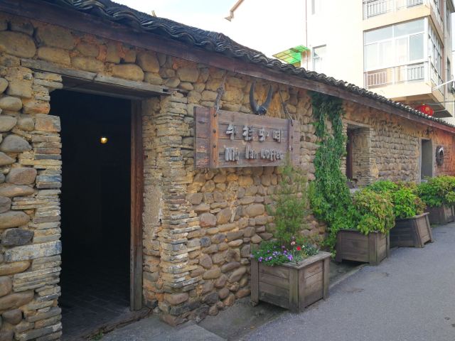 网红村里的网红店——牛栏咖啡。在荻浦村瞎溜达的时候路过,就进去转转。 石头和黄泥垒起来的老房子,据说是以前的牛栏改造的。里面环境还挺好,左右两边实木桌椅排开,看得到屋子的木架构,蛮有味道的。 咖啡二三十一杯,奶茶饮料二十多。