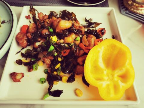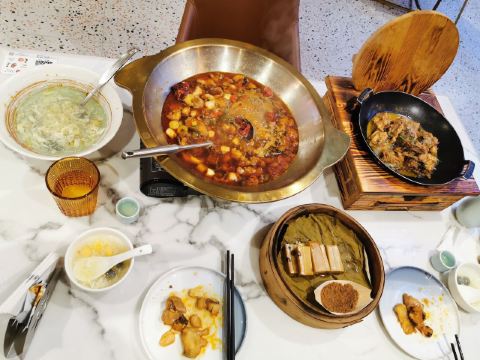炭烤雪花和牛,春色满园,桂花糖醋小排,味增烤银鳕鱼,提拉米苏,高山滇红红茶,你没吃过我的茄子,杨梅鳕鱼球,樱桃鹅肝,奶油南瓜,蕈油竹林鸡,排骨会铁观音,风景,千岛湖鱼头聚宝盆,脆皮红豆牛奶酥,鱼情未了