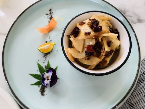 Tonza曼陀林餐厅,想忘了好久,mark了好久,终于有机会来这里。菜品还是不错的,但是服务真心一般,菜品可以打4.5分,服务可能就2.5分。这道菜叫做夏日丛林,是一道凉菜,是在我们把所有热菜都吃完了之后才上来的。不过这道菜的颜值还可以,下面是酸奶和紫薯泥。