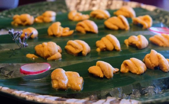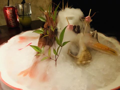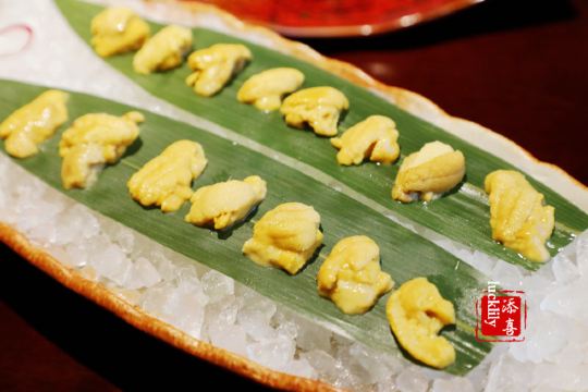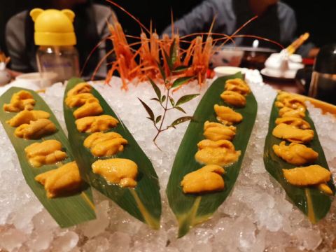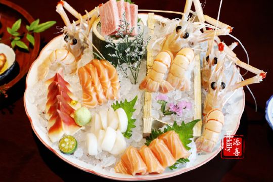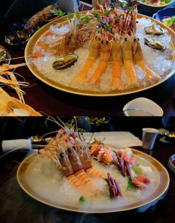 海参鲍鱼汤,刺身拼盘,新西兰鳌虾,法式鹅肝佐面包,芝士焗蟹宝,香煎雪花牛肉粒,蓝鳍金枪鱼,海胆煎饺定食,芝士焗小青龙,特级牡丹虾,法式鹅肝