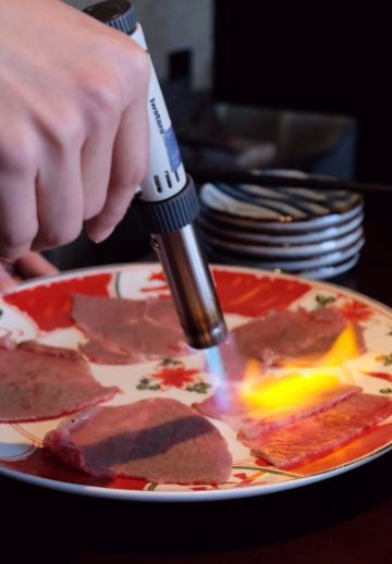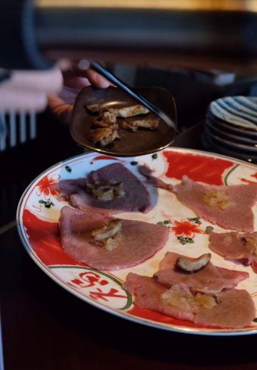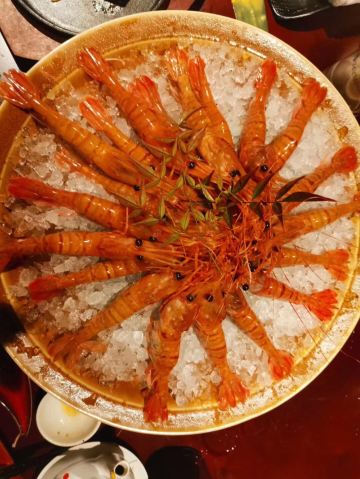 Zhu li · jing yuan li⛩[环境]这一次听说竹哩新店开在了杭州大厦501,甚是欢喜!欣然而往,果然不负期望,3000平方米餐厅约对是杭州日料界的空间旗舰,30人的板前,60个大小不一的包厢,可容纳百人欣赏表演的日式演艺大厅,全店地暖让脚板快乐得想飞,踱步走过一排排矗立着的鸟居,相传鸟居是人间与神明相连的结界,步入的感觉宛若穿越, 井原里采用的会席+自助的形式,先上的是会席套餐7道菜品。 先付 「自制果脯」、新鲜的龙眼、去了皮的圣女果, 八寸 日式煎腐、拌海哲丝等等,集合了甜、酸、咸等多种口味,起到开胃的作用; 吸物 「海参鲍鱼汤」这道奢华的滋补汤实在是很厚道!用到大的鲜鲍鱼、海参、松茸,汤色浓醇,喝下去整个人都暖了,深度的鲜美! 造里 「刺身拼盘」想说会席中刺身拼盘用到的食材在杭州的日料界基本上都算是顶级的品质了,生长在800米下无污染深海的新西兰特级鳌虾,比我的手掌还要长,据介绍说要30年才能长到那么大一只,虾肉晶莹剔滑,清鲜可口;刺身拼盘中还有蓝鳍金枪鱼大脂(或许是中脂吧,但我却感觉是我最喜欢的大脂,因为中脂的口感觉还没有这么丰腴脂润);经常自购,早就发现三文鱼其实是有大的差异的,比如产地挪威的、爱尔兰的和智利的就有着截然不同的差异,智利的三文鱼真的比较差了,而此刺身拼盘中的三文鱼是真正的帝王鲑级的,主要还是口感,入口脂溢的舒坦与满足感;服务生有介绍还有的生鱼片是日本寒鰤鱼,寓意着加官进爵,也代表井原里祝食客好运连连,就冲这样的祝憬也要赞一个! 名物 「炭烤海钓鱼」烤制的火侯控得极好,鱼皮微微泛焦,而鱼肉保持着紧实的质地,筷子夹去,鱼肉顺着纹理散开来,非常的新鲜的品质,鱼肉很香,海钓鱼对于杭州的食客来讲,亦是稀见的美味了。 进肴 「芝士焗小青龙」澳洲小青龙半剖开,每半上覆盖了厚实的芝士,都可以拉出丝来,厚重的芝士裹着紧实的虾肉,岂止“好吃”二字可以形容? 强肴 「火炙澳洲和牛」 这个就比较厉害了,服务生会端着纹理清晰的澳洲和牛来到包厢,用喷枪现场将牛肉炙熟,竹哩选用的是天然牧场放养的草饲和牛,话说草鉰或是谷饲我都一样的喜欢,草鉰的精良一些吧,烤完一面之后,裹上特制的日式醋和萝卜泥之后再烤,熟度可以自己选择,我们选了五分,入口脂化,溢齿留香。 七道会席之后就是放题啦!
