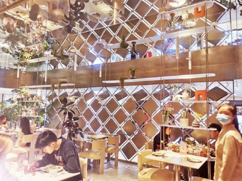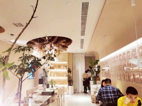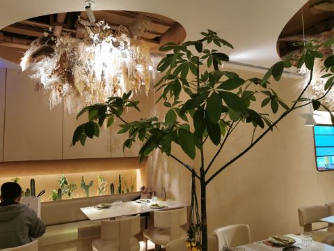 平安夜的蚊子店名:缦云里花园西餐厅 地址:湖滨银泰D座3F 交通:地铁一号线龙翔桥C出口 营业时间:11:00-14:00 16:30-21:00 人均消费:97元 [薄荷]环境: 工作的繁重压力,令我心生烦恼。朋友提议周末去缦云里,聚会放松,正中下怀,一拍即合,说走就走。 湖滨银泰,楼层低矮,人流汹涌。水泥森林的快节奏,令我无所适从。缦云里花园西餐厅,如同闹市里的世外桃源,把喧嚣和繁杂隔离。 日式的清新风格,乳白色纯净色调,简约而不简单,文艺而时尚的线条。奇妙的镜面设计,无处不在,空间相护倒映,视觉更为敞亮。 植被绿意盎然,鲜花吐露芬芳,清新淡雅,浪漫精致。慢生活感染着心灵的方寸之地,仿佛徜徉梦境花园,让心情放松,让大脑放空,让生活更从容。 [服务铃]服务: 店员都是小哥哥小姐姐,朝气蓬勃,彬彬有礼。热情招呼,指引入座,拿来编织筐,为我们装包。就餐过程中,几次主动加水、换碟,服务棒棒哒。 |炙烤蜂蜜猪肋排^蜂蜜炙烤猪排,色泽诱人,酱香浓郁,甜蜜多汁,肉质细嫩。用手拿着直接啃,好吃到吮指!金灿灿的薯条,蘸着番茄酱,更是锦上添花。 |芒果虾仁牛油果沙拉^芒果、虾仁、牛油果,满屏都洋溢着,夏秋之际的娇艳欲滴,入口随即感受到新鲜,柔美的酸甜,仿佛豆蔻年华的芬芳。 |焦糖鹅肝布丁^一道颜值担当的甜点。蓝莓、火龙果、凤梨、柠檬片,新鲜果粒点缀,缤纷而灿烂。布丁表面的焦糖甜脆,布丁的甜蜜与鹅肝的咸香融合,在舌尖散发出奇妙的层次感。 |和牛肉酱意面^浓郁的茄汁,火热的红色,酸甜很入味,把味蕾都打开,肉酱也丰富,面条有韧性。这盘意面,吃得过瘾!推荐! |百香果绿茶^百香果秄,咀嚼有嚼劲。百香果的酸甜、绿茶的芬芳,清凉爽口,沁人心脾。 缦云里,徜徉梦境花园。 小美好,在梦境里装满。