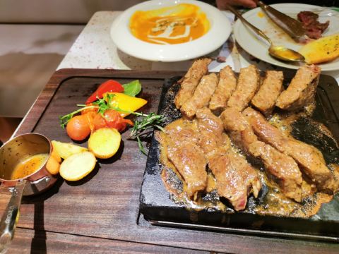 海苔鲜虾饼,西班牙牛肉烩饭,椒麻小酥肉,石烧安格斯雪花牛排,芒果松阪肉,香浓南瓜奶油浓汤,经典凯撒沙拉,澳洲安格斯牡蛎肉,猫爪布丁,主厨推荐石烧西冷牛排,澳洲M5和牛眼肉,主厨香茅草烤鸡,和牛肉酱意面