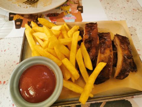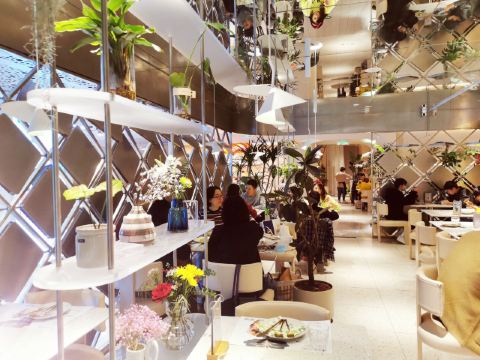 店名:缦云里花园西餐厅 地址:湖滨银泰D座3F 交通:地铁一号线龙翔桥C出口 营业时间:11:00-14:00 16:30-21:00 人均消费:97元 [薄荷]环境: 缦云里花园西餐厅,上周末与朋友小聚,N次刷店。湖滨银泰,快节奏生活,似乎只有缦云里,坐落在水泥森林里,却如同一座浪漫的花园,让疲惫的心放松休憩,让每一寸空间自由呼吸。 花店与西餐厅的巧妙融合,创意新鲜有趣。仿佛游走于花海,又如同沉溺于爱丽丝的梦境,鲜花绽放,绿意盎然,无缝对接,大自然的灵犀。乳白色调,简约之美,令人心醉,温馨弥漫,邂逅好心情。 缦云里,花海里,是你的娇艳欲滴。 [服务铃]服务: 小哥哥小姐姐文质彬彬,有些青涩,服务热情主动,就餐过程中,主动加水,有求必应。周末上菜速度慢了些。 |炙烤蜂蜜猪肋排^烤猪排的蜂蜜香,微微的甜,令人吮指。金灿灿的薯条,蘸着番茄酱,吃得超级香。 |澳洲谷饲安格斯西冷牛排^五分熟,黑椒汁,牛排纹理清晰,鲜嫩多汁,但并不出彩。 |焦糖鹅肝布丁^缤纷果切点缀,娇艳欲滴,颜值担当,鹅肝的香,融入焦糖布丁,口感细腻甜蜜。 面包干蘸着吃,更添无穷趣意。 |松露菌菇奶油意面^松露、菌菇、奶油,淡淡的咸,主食吃一点就饱了。 缦云里,花海里,是你的娇艳欲滴。