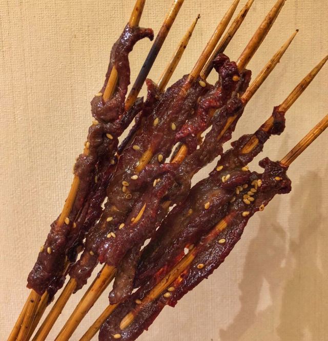 YoYo_8X4Y0V1I据说和在重庆吃火锅一样,在东北,没有什么是一顿烧烤解决不了的,如果有,就两顿 e 来东北的两个愿望,搓澡和吃烧烤。搓澡已经达成了,吃烧烤在大众上选了这家评分最高的。虽然现在有的网红店的确名不符实,但是这家店又是一次大众实力的体现!敲~好~吃!!! 菜品推荐没什么好说的,跟着推荐菜点没毛病,全都好吃。最喜欢的是老味牛肉串和五花肉,都是肥瘦相间,又香又不腻。这家好吃的精髓在于食材和佐料都选得很好,肉一吃就能吃出是很好的肉,配上不是乱七八糟的佐料,味道整个飞起! 吃了之后也不会有口渴烧心等烧烤后遗症。那个他们自制的酸梅汤也必须点,喝得到的梅肉和新鲜果味,烧烤绝配 他家店不大,现在是受疫情影响人不多,平时肯定排队的。直到现在我还在回味,太好吃了吧!