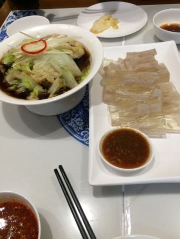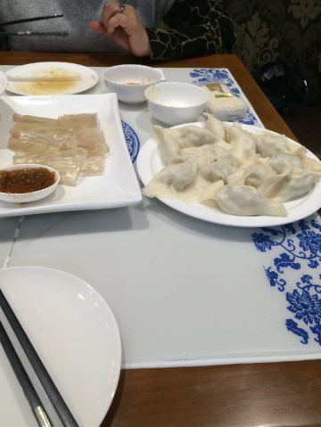 山姆61特别喜欢这里的猪肉白菜饺子馅的味道鲜美,皮也劲道。凉拌土豆丝和五香豆皮很好吃。