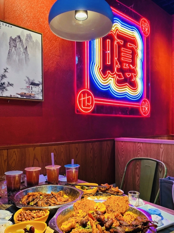 鸡翅中,鸭肠,花菜,鸭下巴大锅,年糕,锅巴,莴笋,土豆,素鸡,山芋条,红豆酒酿,醇辣基围虾,魔芋仔