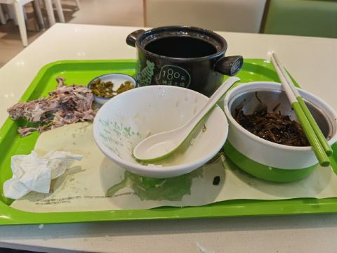 在合肥四天,吃了两次老乡鸡。一到飞机场,百度地图跳出老乡鸡,立即打消了到贵宾室等的想法。机场老乡鸡比市区稍贵。一个中份鸡汤一个米饭外加一个梅菜扣肉,即健康又可口,完全满足了食欲。就餐一个人一个桌,进店必须先净手。中国其它快餐做着做着就冒出各种胡来,老乡鸡质量贯彻始终。