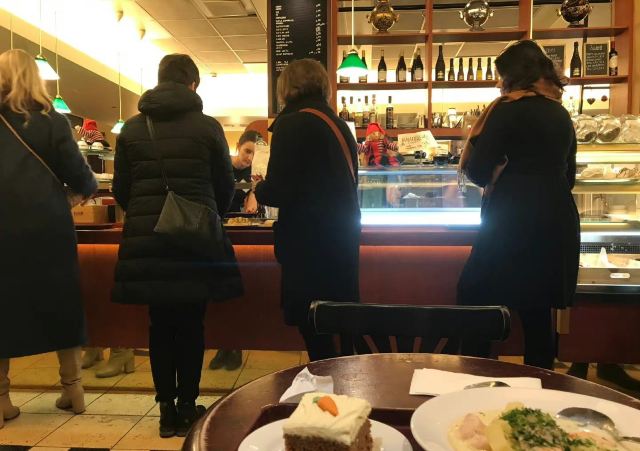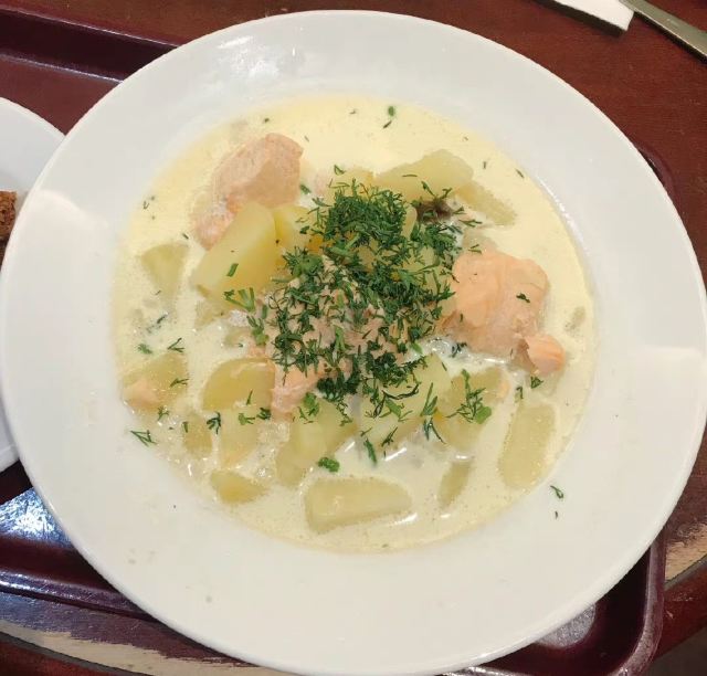 三文鱼浓汤+胡萝卜蛋糕 提前做了攻略都说这家三文鱼汤是最好的 排队超级长,是当地人喜欢来的店 感觉这几天被三文鱼+berry淹没[允悲] 在罗瓦涅米的两天午饭跳过,晚饭都是去我提前找好的店吃当地饭,Anna说虽然我认地图很差但我的美食攻略做得很好哈哈哈哈哈 胡萝卜蛋糕很特别,好吃[good]