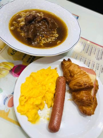 龙城冰室是一间港味十足的茶餐厅。推荐鱿鱼,沙爹牛肉和瑞士汁鸡翼。推荐大虾河粉三宝餐,水准保持,虾大而爽,河粉是厚身宽的,似炒河。三宝咖喱汁整得好,$45热饮,抵食。