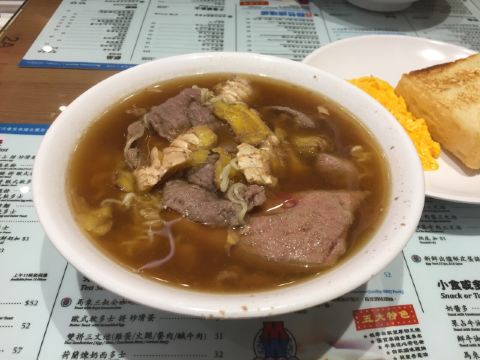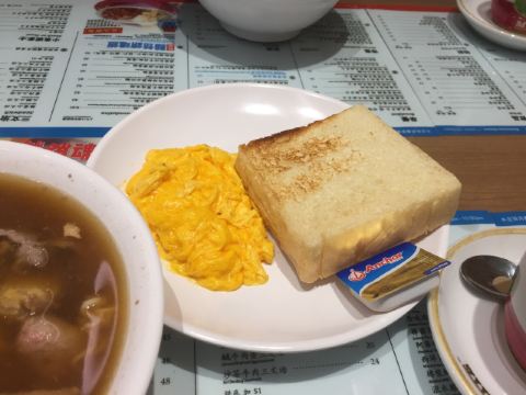 蛮喜欢光顾的餐厅,位置优越就在红磡火车站对面商场,然而不知道为什么一直人流不好,五香肉丁公仔面茶餐厅水平中算好的,公仔面不会糊掉,肉丁也不会太硬,炒滑蛋有水平,口感嫩而不水汪汪,多士口感不错,奶茶合格。这次服务有点不满意,下单叫了几次才有反应。