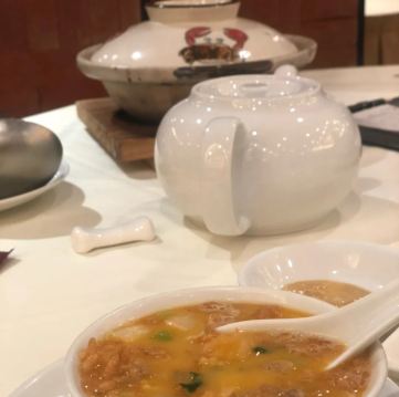 龙虾汤西施泡饭,利苑素鹅,虾饺,冰烧3层肉,杨枝甘露,老火靓汤,凤爪,叉烧,腊味煲仔饭,肠粉