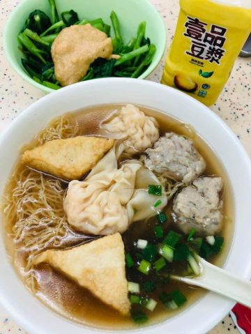 云吞面是招牌面 皮薄馅大 一个或两个鲜虾 真的觉得很赚 很开心。贡丸粉也不错 很Q 。个人喜欢鲜虾云吞面