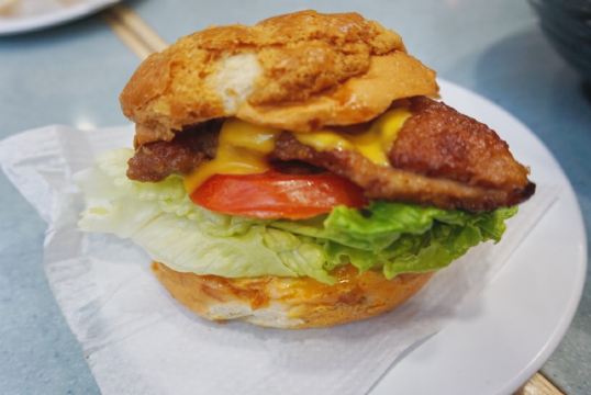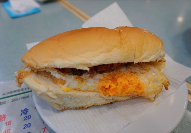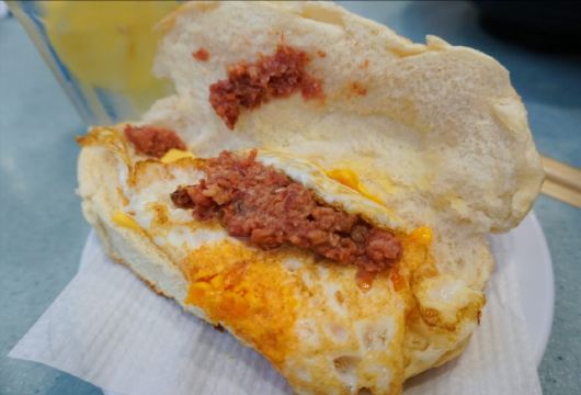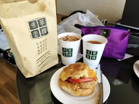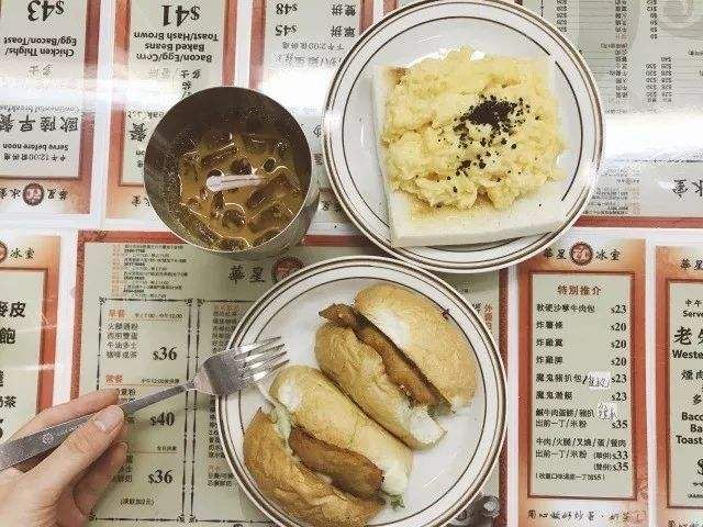 华嫂冰室是一间人气很高的店,尤其是在当地。招牌菜是茄蛋菠萝油的创新组合,用新鲜出炉的脆皮菠萝包,夹著牛油和嫩滑煎蛋,配合蕃茄片,减少传统菠萝油的饱济感,同时也添加了一份清新,口味口感平衡,再加上一杯幼滑奶茶,等到雪柜冰格冷冻丝袜奶茶至冰花浮现,用口押一啖,冰花入口即溶,有奶味亦都有茶味,便是一顿丰富的下午茶。
