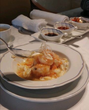 One Harbour Road交通不是很方便,但是位置还不错,可以看到海景,餐厅是中菜厅,食物出品都是粤菜比较多,菜色都是色香味俱全,没有套餐选择,单点也选择多,有很精致的港式点心,蟹黄虾球好吃得不行,虾仁大只,蟹黄鲜美,很快光盘,炸子鸡肉咸咸的,皮很脆,专门挑皮吃,烧腊拼盘也好吃,餐具漂亮,比较适合家庭宴会,性价比超值。