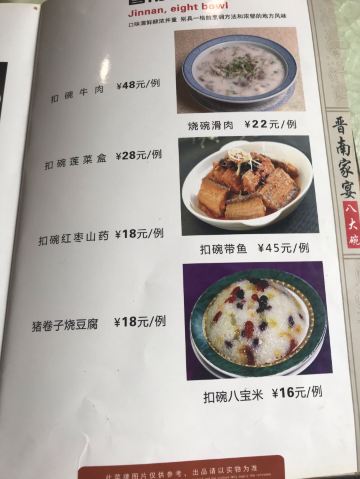 宾馆服务员推荐的一家饭店,店面很不错,装修的很高端,内部一般吧,不过挺干净的,菜的品种很多,八大碗是店里的特色,味道很不错,价格也不贵