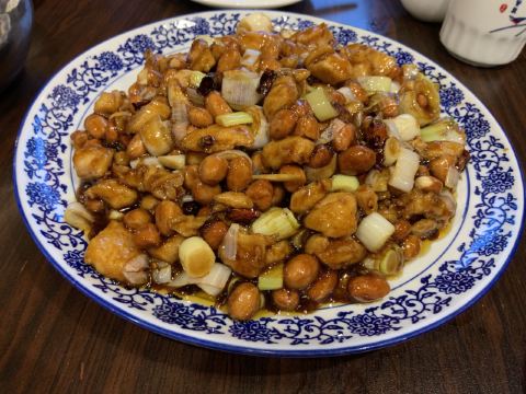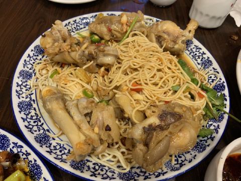 从凤阳韭山洞开车回淮南一个半小时,正好赶到晚上六点饭点,直接去一大碗吃晚饭,人真多,差点还要排队。点的依旧是老三样,宫保鸡丁,大骨头汤,猪蹄拌面。