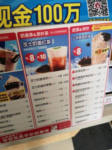 店铺比较小,没有位置坐,大多数人都是过来外带走的,性价比真的非常高,每样东西的话,基本上都是几块钱就可以了,走过路过买杯东西喝,真的很划算。