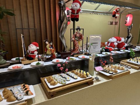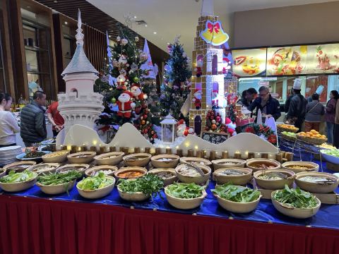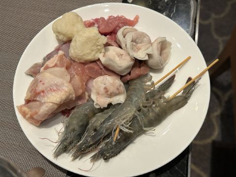 带家人到出来旅游,来到了惠州,住在了格兰云天大酒店。酒店的周边几乎没有吃的,晚上就在酒店的西餐厅吃自助餐。餐厅是5:30营业,没有开始营业就已经有很多人排队等吃了,我们5:35来到,餐厅里面已经几乎坐满了人,很多人的桌子上面摆满了食物。 餐厅的食物有两种选择,熟食与生食,每一张双人桌子上面都放了一个小火锅,单人用的那种,但是在这里却是供双人使用,毕竟桌子也小,放不下两个锅了。可以在自助餐区拿生食,自己煮,但是锅子太小了,需要的时间比较长。 另外就是熟食区域,但是那天客人太多了,食物很多都是一端上来就被抢光了。刺身档口一直都是排长队,后来三文鱼用完,剩下的鱼都还是没有解冻的。烧生蚝的档口也是排长队,虽然有规定每人两个,但是客人太多,根本不够分。 总的来说,食物补充太慢了,服务员都是慢悠悠的,客人急他们不急。
