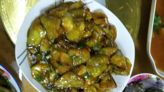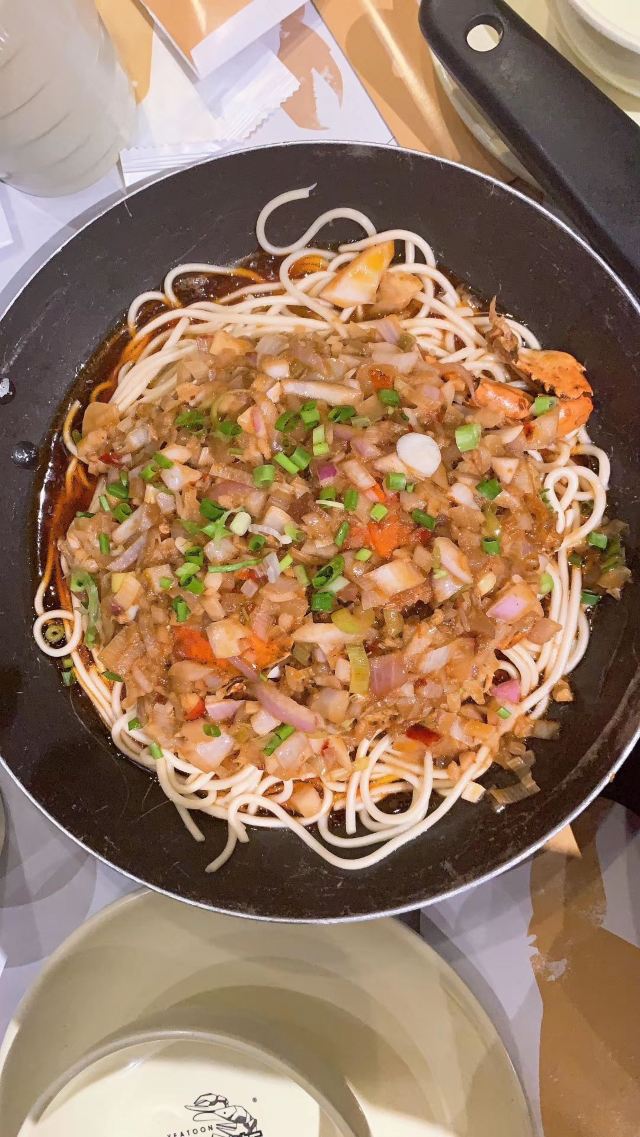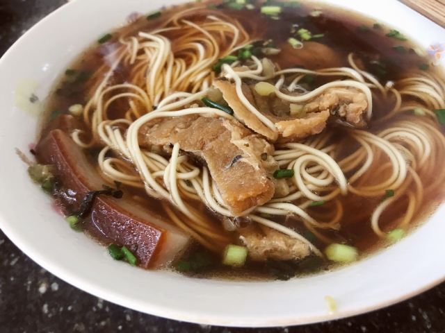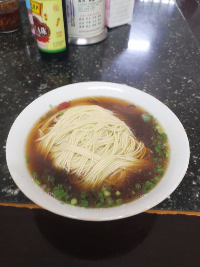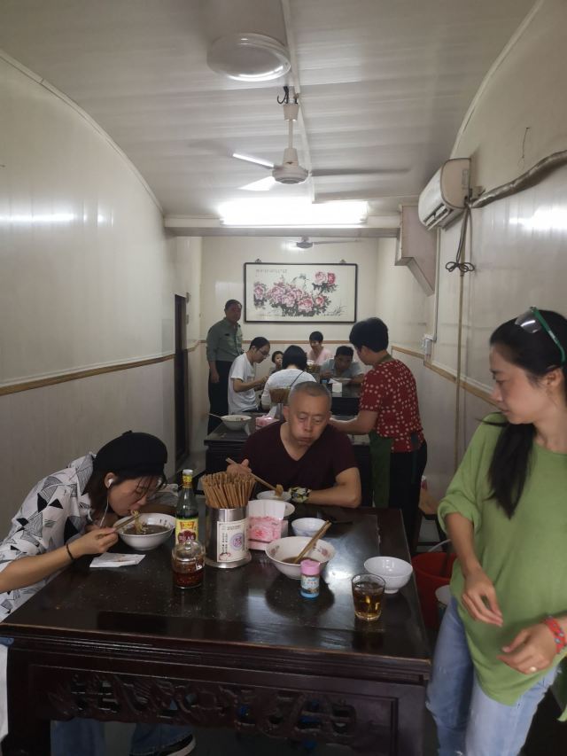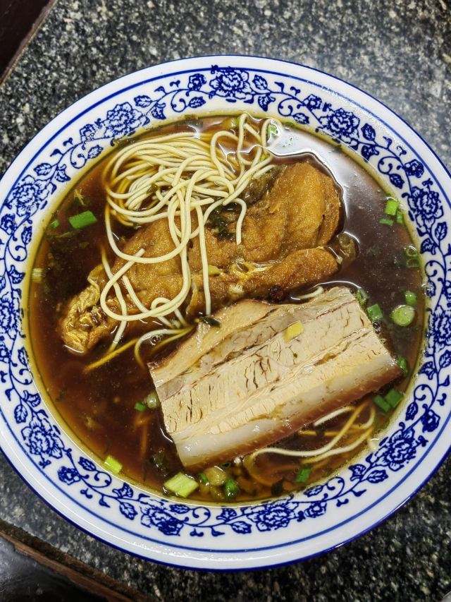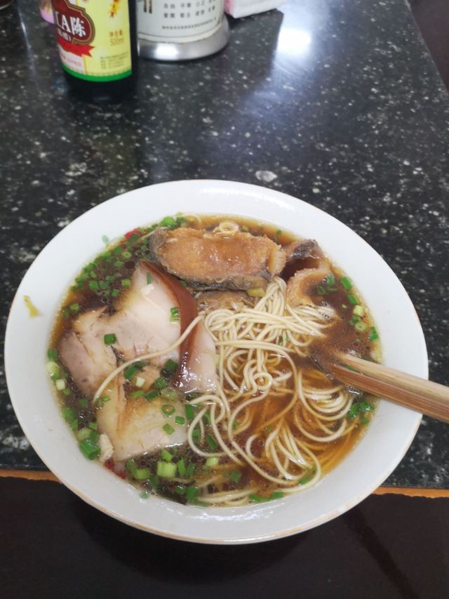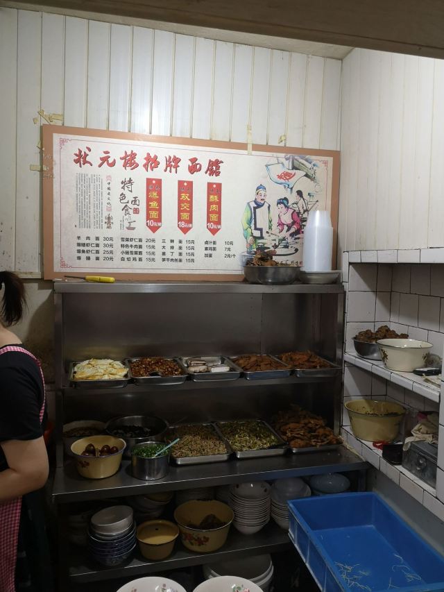 店铺在古镇里面,在北面区域,不用门票可以进入的那边。 旧式民宅,招牌还是蛮大的,店堂里面放了四张八仙桌,也就完全拼桌可以坐32人,哈哈,还蛮多的。 早上到店里,基本上坐满了,点了双浇面。 浇头是爆鱼和焖肉,爆鱼口感和味道都不错,不会很甜。焖肉有一点点油腻。面条的汤底也还可以。