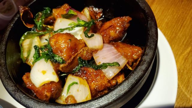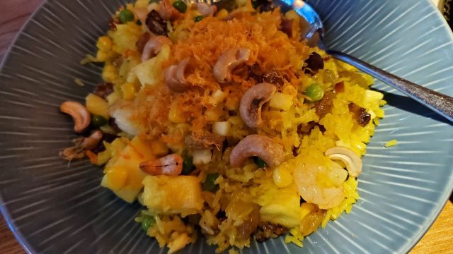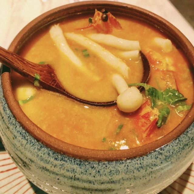 泰果东南亚餐厅环境很有文艺范儿,菜品摆放很精致,让人看着就胃口大增。内设有小卡座,有很好的私密感,让人很舒服。颇受好评的咖喱皇炒大虾、三杯鸡口味独特,值得品尝。