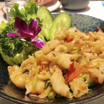 泰国菜 没想到在泰果吃过的泰国菜都确实非常好吃的!这家这个鸡爪!好好吃!是很清爽的酸辣味道!我其实不怎么喜欢酸辣的味道,但是这家的可以!! 烤鸡和米粉就一般 我觉得烤鸡很油== 虾饼&冬阴功汤蛮好吃的 正常发挥这样~ 这个椰子冻好吃的!它虽然里面椰子冻并不多 但是是很正的椰子味 不像很多店会特别甜 失去了椰子本来的味道