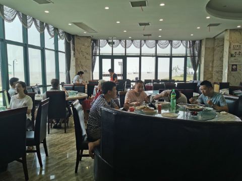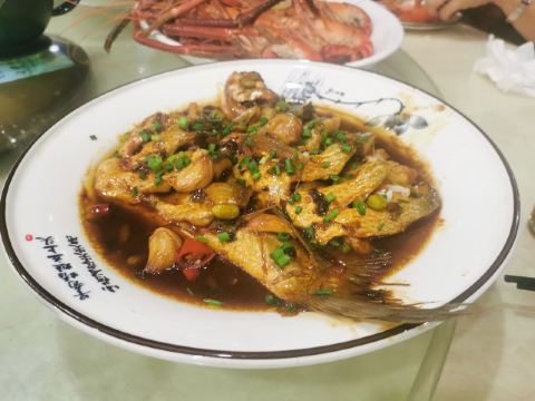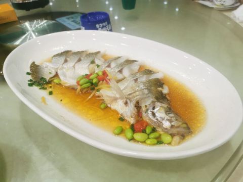 pinko酱渔人码头这里的餐馆多到爆 选择这家 一是好友评价不错 二来小伙伴投票决定 凭消费单可以免费停车吃饭 五点不到 入座率已经很可观 多为大圆桌 一侧靠窗景观位都被预订了 点菜到前台 有各种新鲜时蔬、半成品展示 喜欢哪里点哪里 「秘卤凤爪」¥4/根 凤爪饱满 卤味的很好 「太湖白鱼」¥58/斤 整鱼划刀 一块块肥厚的肉质鲜嫩不已 得时刻注意小骨刺 「白虾」¥48/斤 葱油酱底 很鲜很香 停不下口 「老鲜肉饼」¥4/块 炸制金黄 一块块很实沉~被香气迷倒 又被油肉腻到 很复杂 既喜欢它的香 又害怕它的油 「柴火湖羊肉」¥118 红烧入煲 羊肉不膻 吃口黏嘴巴 感觉胶质很足 「手工鱼圆」¥30 模样有趣极了 扁平的椭圆 纯手工打制的鱼圆 洁白透亮 弹性十足 「秘制老鲜鸭」¥98 油光蹭亮的整鸭 酱汁裹满全身 浓郁入味 有一丢丢鸭毛没剃干净 味道不差 个别湖鲜挺喜欢 吃完出发月亮广场咯