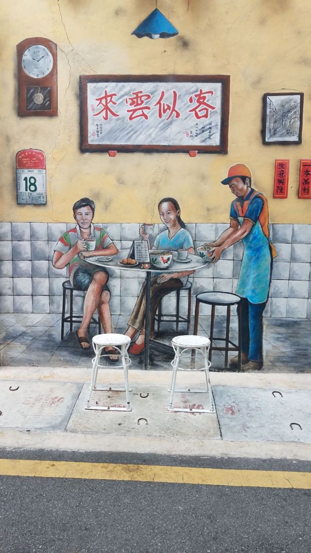 OldTown White Coffee Ipoh Padang怡保旧街场是怡保的市中心,这边虽不繁华但却热闹,你能想到的大马美食这边都能找到。穿梭在二奶巷、三奶巷中的各色小店里更是乐趣无穷。旧街场的壁画是旧街场白咖啡为庆祝和纪念怡保旧街场的传统与历史,防止人们遗忘,特邀曾经在槟城作壁画的立陶宛画家,共同打造“旧街场文化城”。老人与咖啡、铁船采矿等作品都围绕着怡保旧街场这个白咖啡的起源地,每一个壁画都拥有怡保传统与历史风格仿佛带您回到上个世纪的怡保旧街场。赶紧跟着壁画一起来体验正宗的怡保风情吧。 这里非常值得来走走停停看看,很不错