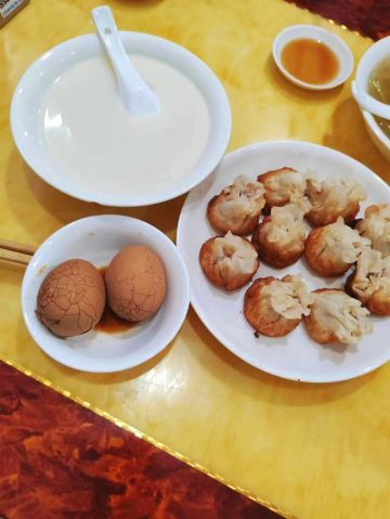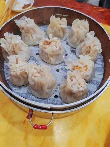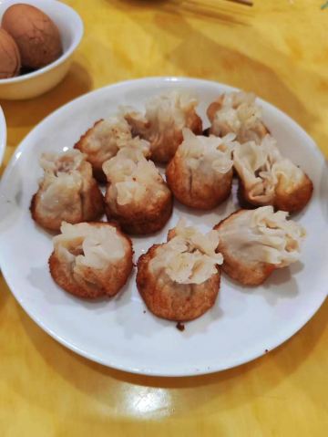 去嘉兴选的早餐店,就在酒店后面,走走过去倒是方便。店真的很小,排队人很多。|生煎烧卖^这个是必点,烧卖用生煎的做法,馅料是笋和肉的,底部煎过后真的很香。 |虾仁烧卖^这个是蒸出来的,烧卖里面有一包汤汁,很鲜美。虾仁个头也蛮大的。