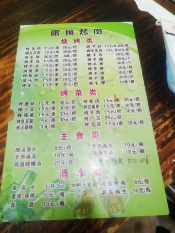 眼镜烤肉店肉质鲜嫩,味道超赞,在镜铁路市场内,环境不错,目前是嘉峪关市内烤肉最好的一家烤肉店之一,服务一流,是本市人招待亲朋好友的首选