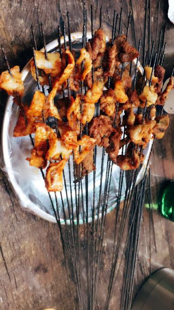 镜铁市场里最大的一家烧烤,露天位置,比较干净,更是好吃不贵的选择。烤羊皮又脆又劲道,蘸上蒜醋汁的烤羊肚十分美味,唇齿留香,果味啤酒,杏皮水,都很好喝。