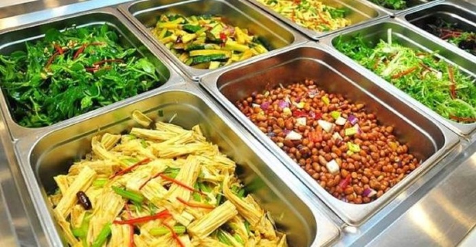 烤面筋,风味茄子,素水饺,拉皮,蛋挞,玉米,水果沙拉,山菌疙瘩汤,鸡蛋羹,炒面