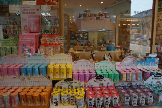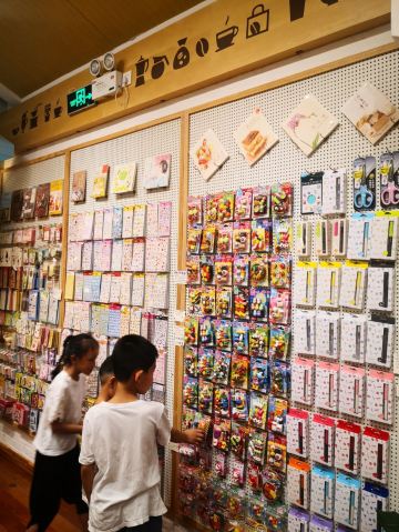 在陶溪川高大厂房包围下有这样一栋挂满绿萝,红砖墙剔透的玻璃相间的建筑,一家猫的天空概念书店。书店安安静静,有很多阅读的人,或就在静静地望呆的人。书店里除了书,还有很多的创意商品,很有特色。我倒是仔细地一件件看这些小玩意,现在难得逛街,都不知道还有这么多有趣的小文艺商品,各个都是这么精致可爱。