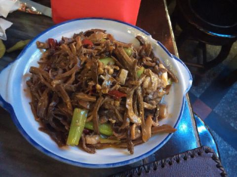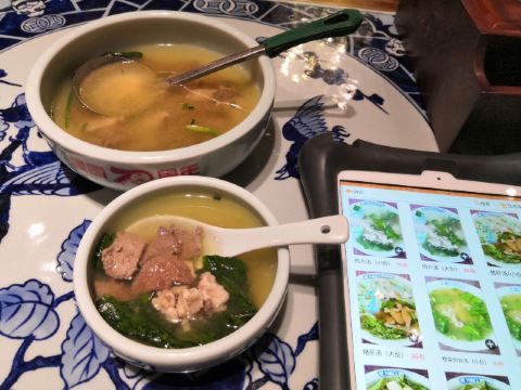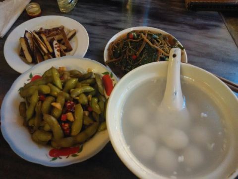这里的服务员都是阿姨型的,每桌都有菜单,坐下慢慢看。小菜还有明档,可以自己去看好就端,阿姨巡视帮你记录。菜味微偏咸但还不错,我们要了5样106元,个人觉得吃的还可以。