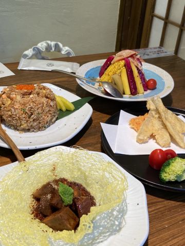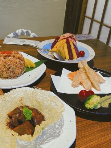 还差五百万古厝日料→『清叶割烹料理』 环境 就在五店市里,挺好找的,红砖古厝里的异样风格,挺清新。 套餐 菜式挺全,整体非常满意~ 和风果蔬沙律: 是我竟然喜欢吃的沙拉~搭配和味道都挺好的 冰镇海螺: 相当赞,芥末只要米粒大小就行,海螺肉一嘴下去超满足,口感相当好,回味无穷啊哈哈 柚香和牛牛舌: 牛舌质感棉柔,没有腥味,和海螺风格不一样,多了些对比体验~ 海鲜炒饭: 很赞的炒饭,分量也足够,有点闽南风格哈哈,就着萝卜吃很棒~ 炭烤青花鱼: 鱼选的挺好的,烤的挺香,滴了柠檬汁,肉厚的地方味道也相当可,不会发柴。 榴莲水果卷: 喜欢,刚好和肉替换着口感吃,体验很好。 海鲜茶壶汤: 茶壶里有海鲜哟,小伙伴们有兴趣的可以上手了~不过汤的味道不是我的菜。 服务: 无线竟然没密码,老板真直接。上菜速度很快,服务员小姐姐的衣着举止气质和店里的整体风格很搭~