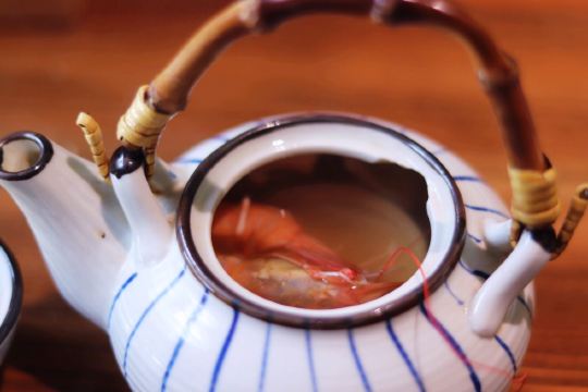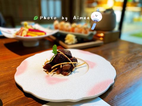 不知所云18隐藏在闽南红砖古厝里的一家日料餐厅 这个礼拜的第二顿日料大餐,这次去的日料餐厅清叶割烹料理隐藏在晋江五店市的闽南古厝里,环境特别清幽,红砖古厝里浓浓的日式风情不仅毫无违和感,还给我一种清新和淡雅的体验。 这次点了招牌双人套餐团购,两人吃刚刚够饱,服务员上菜速度也很快♀️。 三文鱼北极贝刺身拼盘:刺身还算比较新鲜,更喜欢三文鱼刺身,厚切的三文鱼刺身肉质紧实,特别肥美。 烤牛小排:摆盘特别精美,牛仔骨趁热吃,很有嚼劲,特别入味。 炸虾天妇罗:香喷喷的,外酥里嫩,蘸点酱汁,别有一番滋味。 榴莲水果卷:规中规矩的寿司,不过浓浓的榴莲味让我印象深刻。 海鲜茶壶汤:精致的茶壶器皿给人美得享受,海鲜汤用料特别足,有虾、扇贝、文蛤等,汤汁特别鲜甜,感觉搭配其他日料菜品更棒。 手卷:餐厅的手卷也不错,很精致。 和风果蔬沙拉:酸酸甜甜的,低热量又特别解腻。 人均大约150元,闽南古厝邂逅日料可以算是餐厅最大的亮点,敲喜欢这样的清幽的环境。